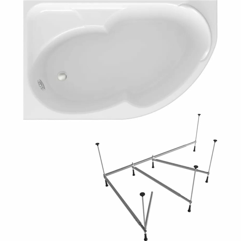 Угловая ванна акриловая 160 x 105 с каркасом Lavinia Boho Bell Pro S1-3702160L в наборе 2 в 1: асимметричная ванна (левый разворот), каркас