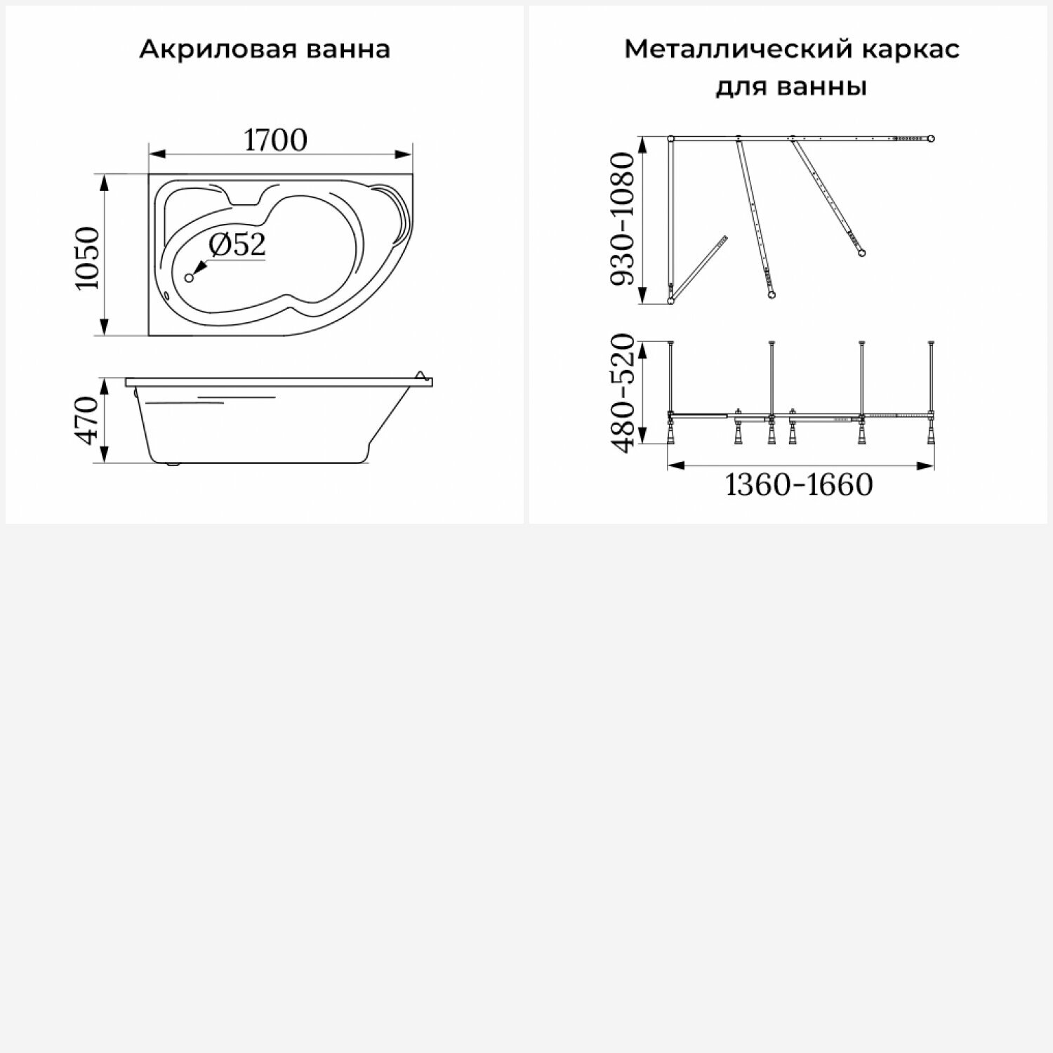 Акриловая ванна 170x75 с каркасом Lavinia Boho Pure S1-37100075 в наборе 2 в 1: прямоугольная ванна 170 x 75 см, каркас