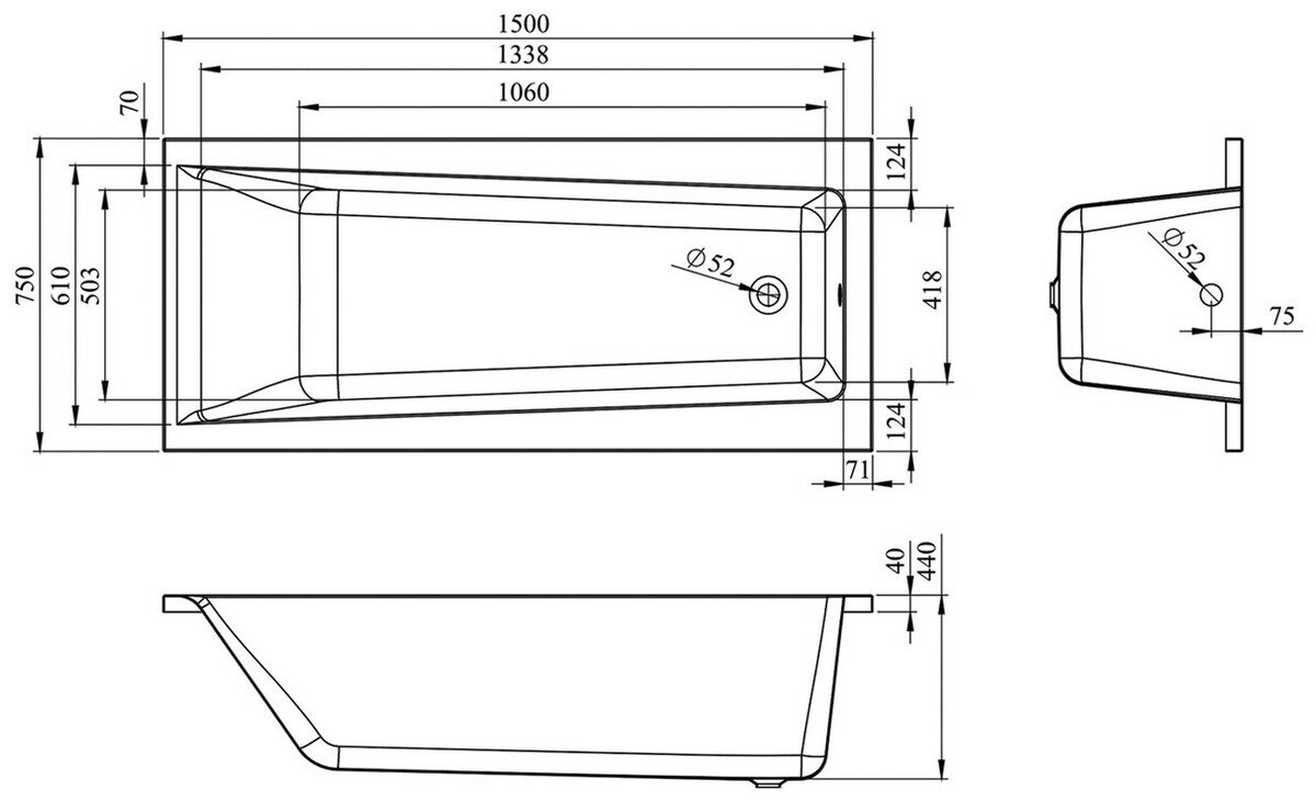 Акриловая ванна 150x70 Lavinia Boho One 37010050: прямоугольная ванна 150 x 70 из литьевого акрила с усиленным армированным корпусом