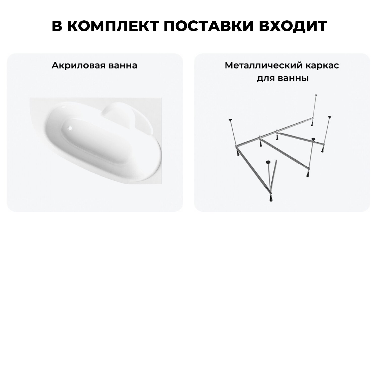 Угловая ванна акриловая 150 x 150 с каркасом Lavinia Boho Elegant S1-3705015P в наборе 3 в 1: акриловая ванна, каркас, подголовник 2 шт.