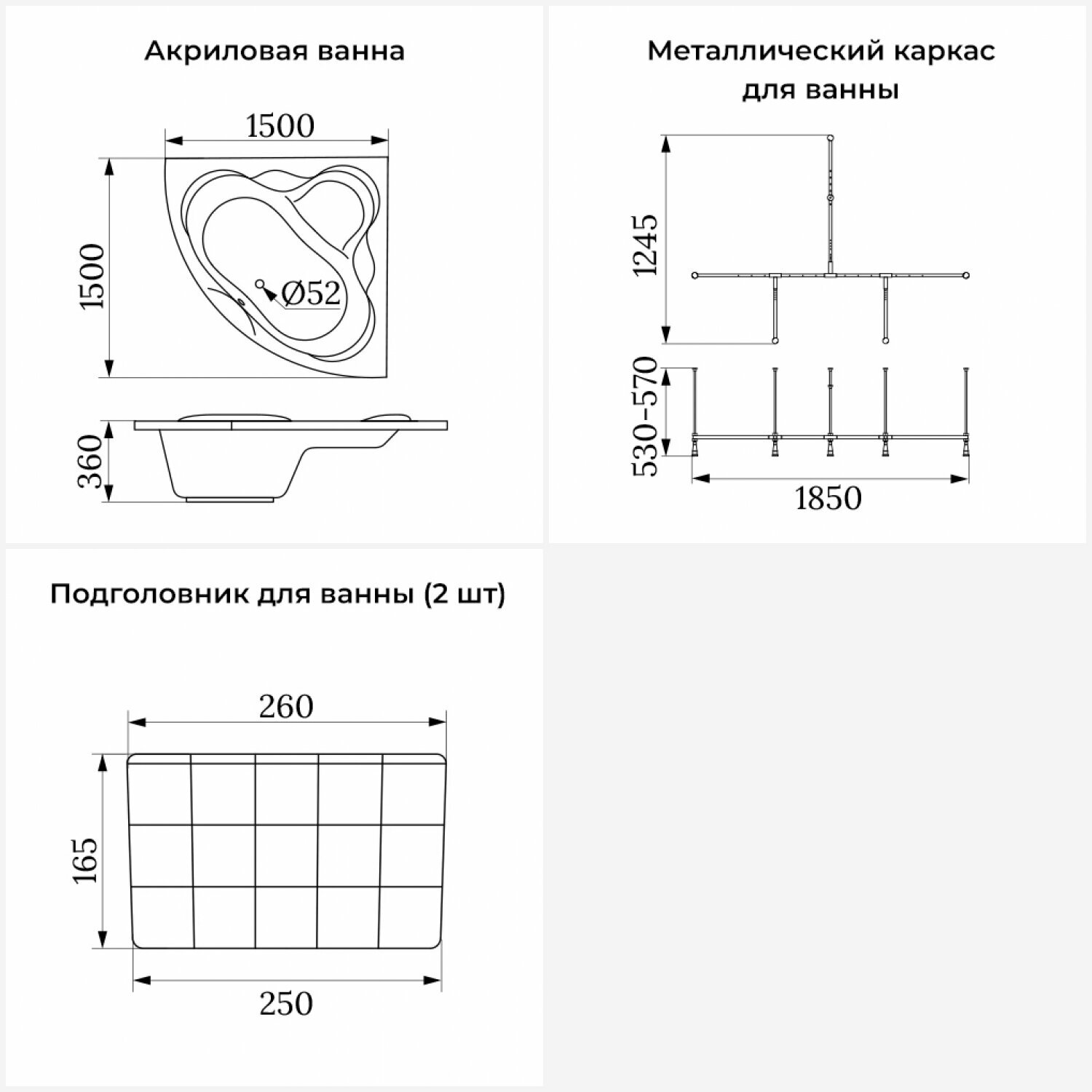 СохранитьУгловая ванна акриловая 150 x 150 с каркасом Lavinia Boho Elegant S1-3705015P в наборе 3 в 1: акриловая ванна, каркас, подголовник 2 шт. интересное: