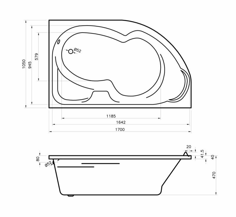 Угловая ванна акриловая 170 x 105 Lavinia Boho Grance Hill 3703170L: асимметричная ванна из литьевого акрила с усиленным армированным корпусом (левый разворот)