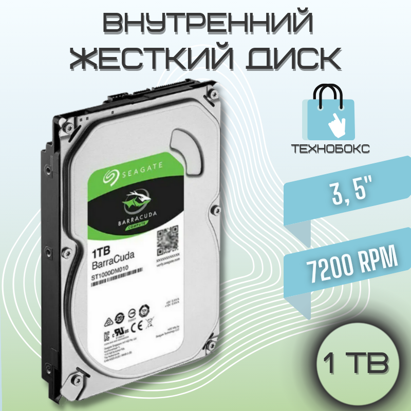 Жесткий диск 3.5" SEAGATE BarraCuda 1 ТБ, SATA III, 64 Mb, 7200 rpm (ST1000DM010)