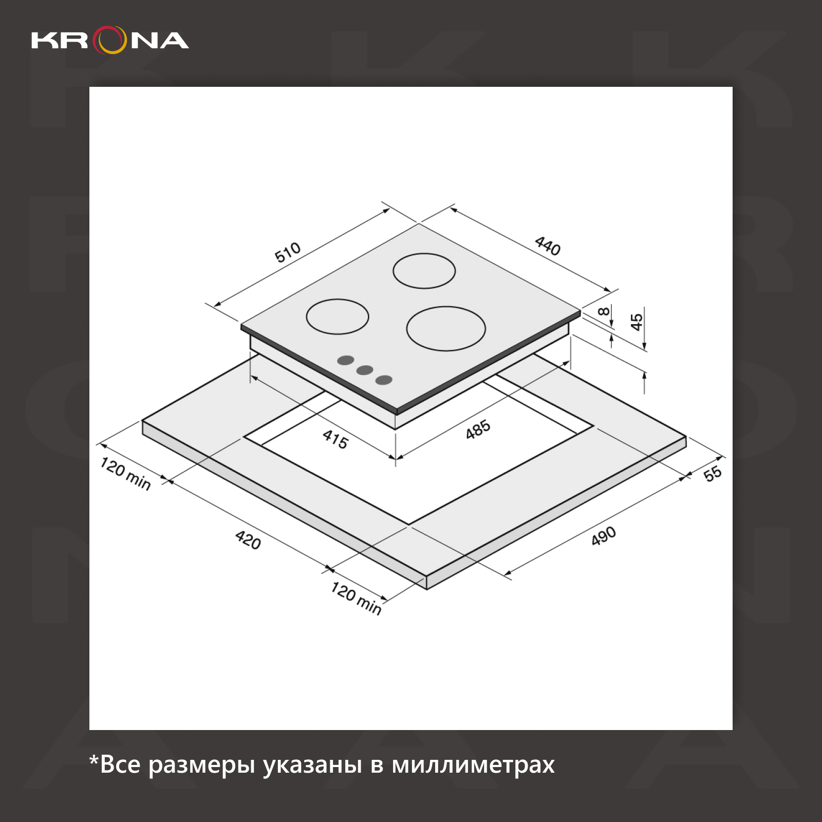 Варочная поверхность KRONA PARTITA 30 IX встраиваемая газовая (независимая) нержавеющая сталь