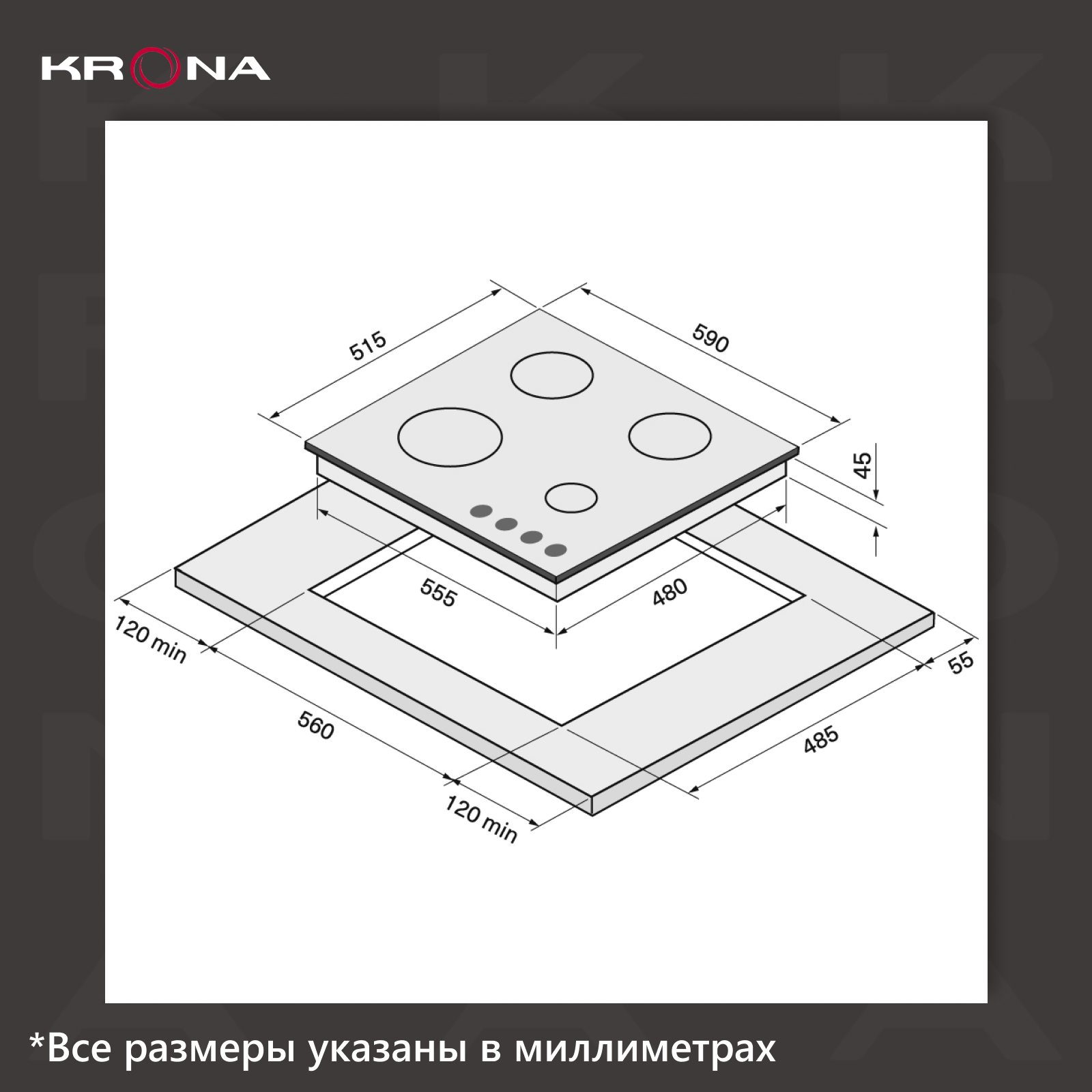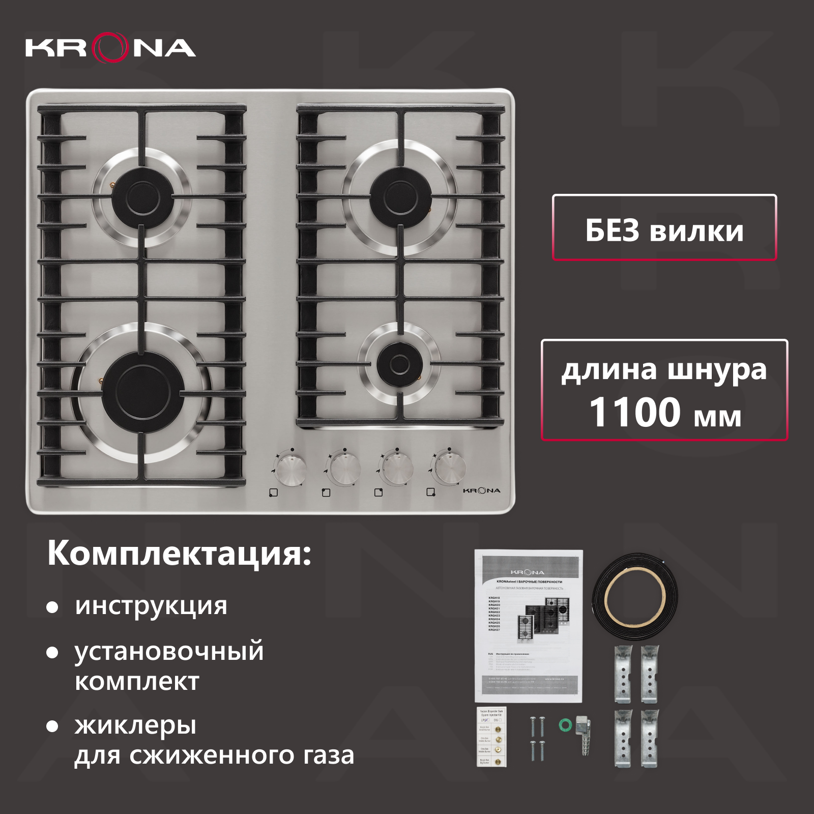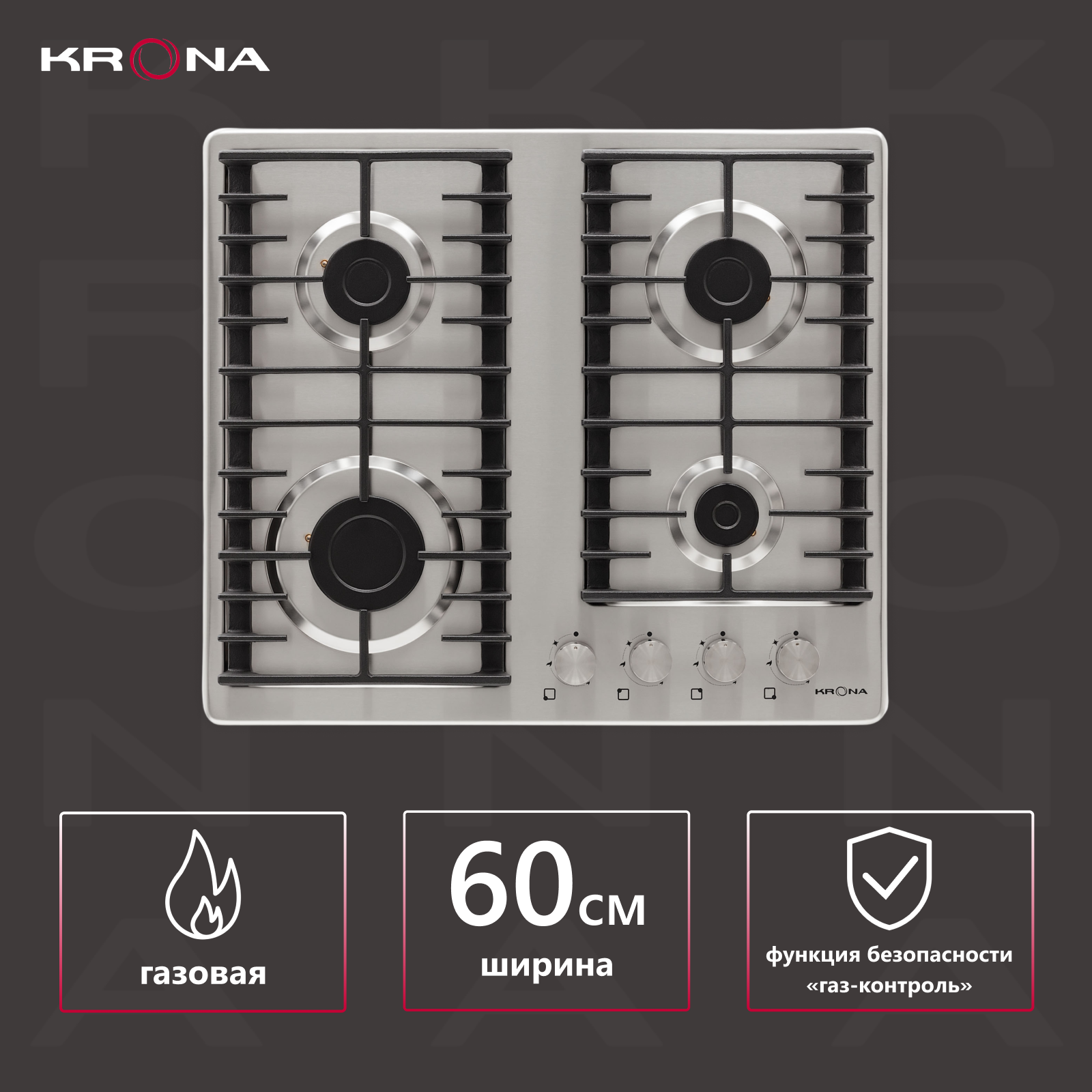 Варочная поверхность KRONA PARTITA 30 IX встраиваемая газовая (независимая) нержавеющая сталь