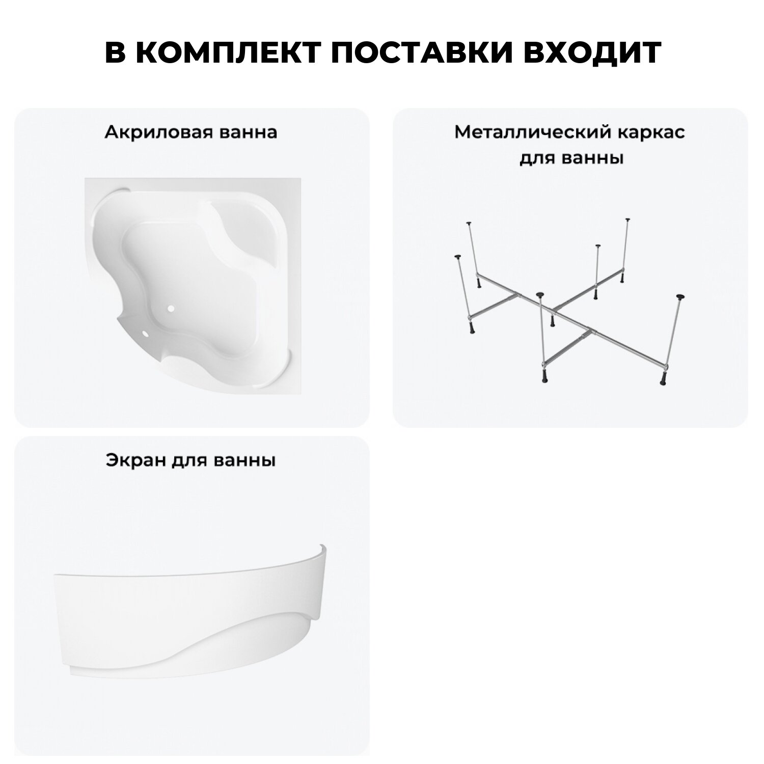 Акриловая ванна 150х150 см Lavinia Boho Aveo набор 3 в 1 S2-37040150: угловая ванна, металлический каркас, лицевой экран