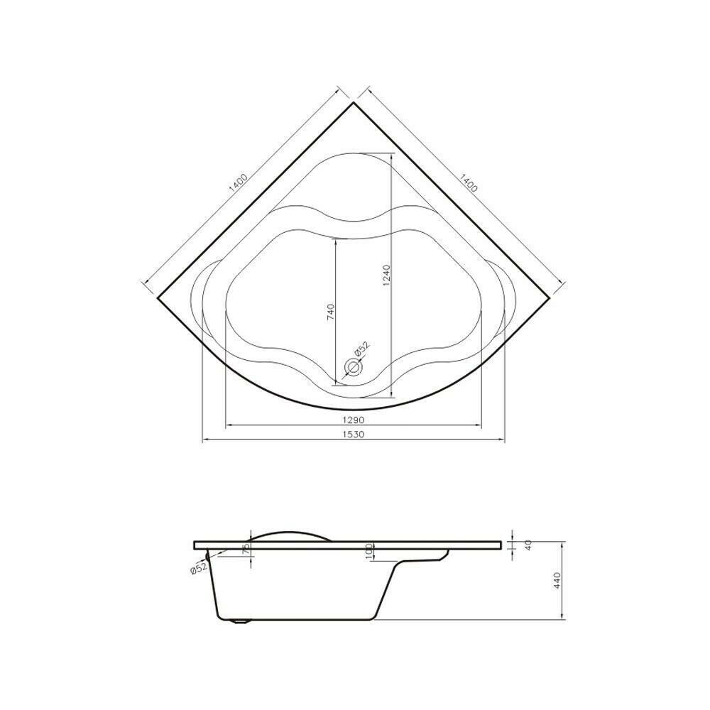 Угловая ванна акриловая 140 x 140 Lavinia Boho Aveo 37040140: акриловая ванна из литьевого акрила с усиленным армированным корпусом
