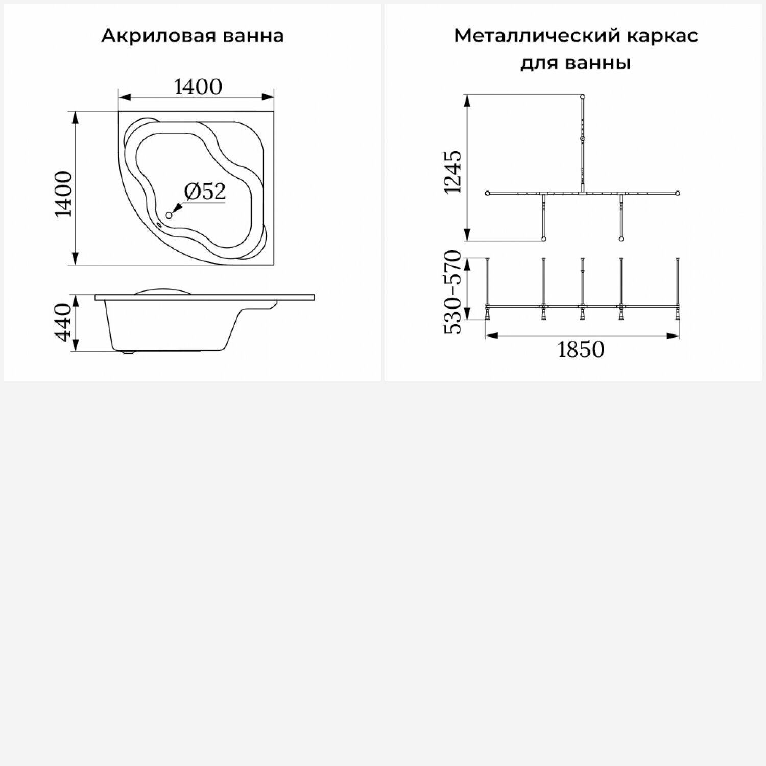 Акриловая ванна 140х140 см Lavinia Boho Aveo набор 2 в 1 S1-37040140: угловая ванна, усиленный металлический каркас