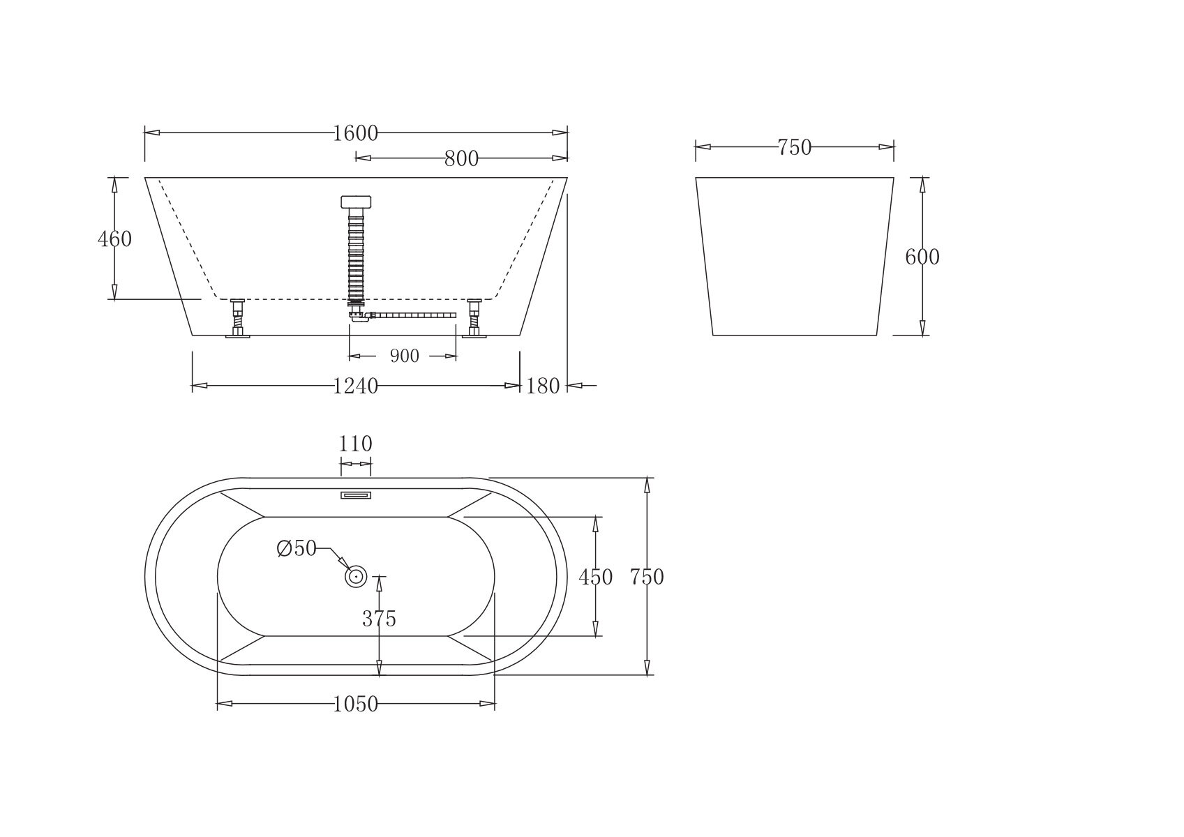 Ванна акриловая отдельностоящая без перелива BelBagno BB71-1600-W0