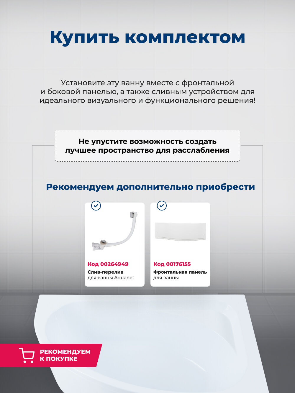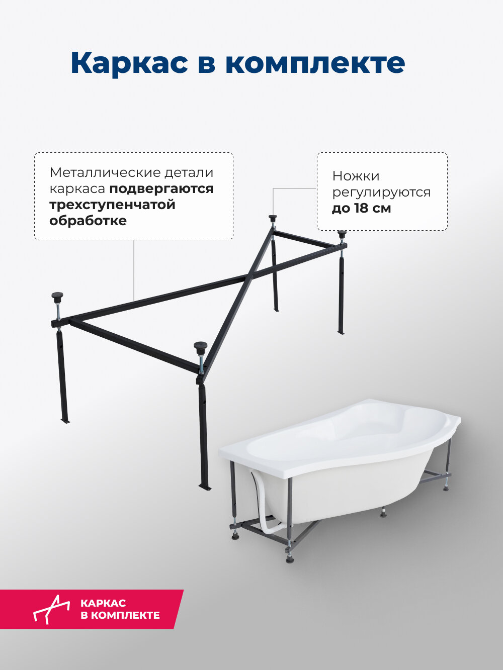 | Подробная комплектация | ванна, каркас |