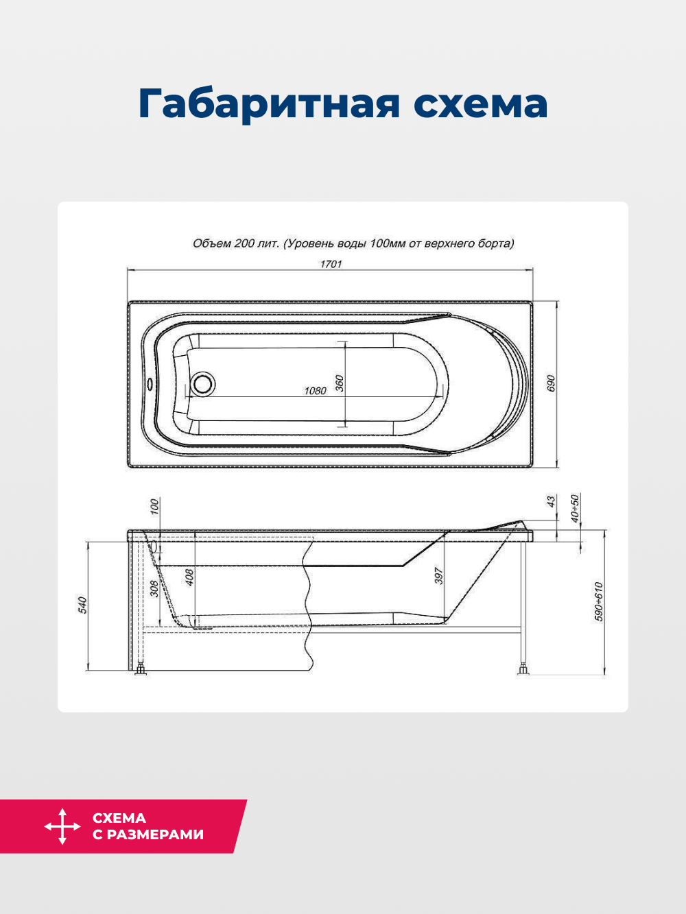 | Дополнительная информация | толщина листа: 0.4 см; максимальная глубина ванны от края борта: 40,8 см |