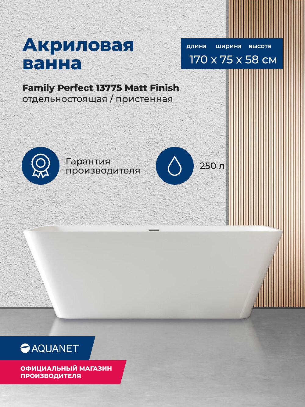Ниже Вы можете прочитать отзывы на Акриловая ванна Aquanet Family Perfect 170x75 13775-MW Matt Finish, ознакомится с подробными характеристиками, посмотреть интересные обзоры и фотографии на Акриловая ванна Aquanet Family Perfect 170x75 13775-MW Matt Finish.