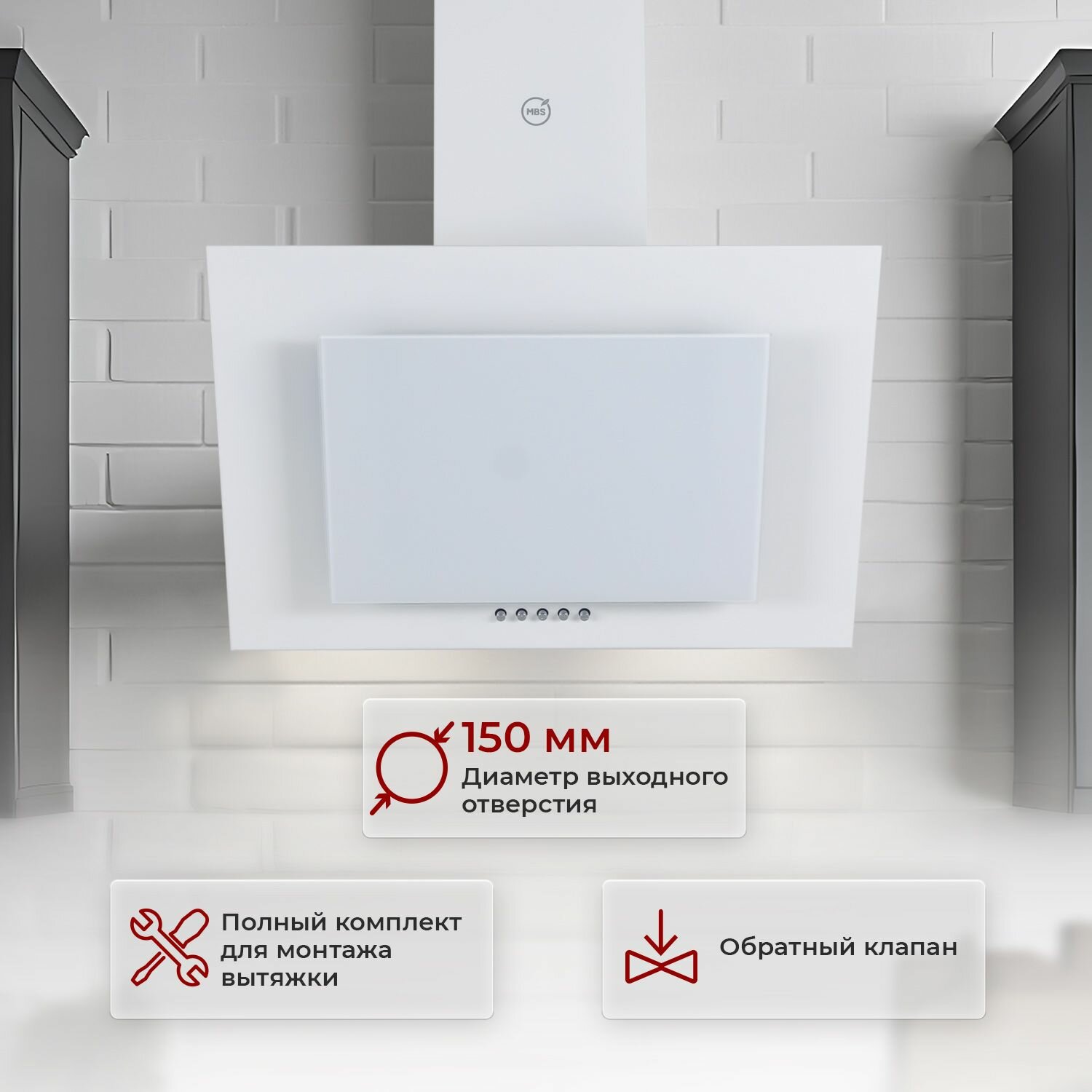 Купить Кухонная вытяжка наклонная MBS GALTONIA 160 GLASS WHITE/60 см/производительность 750м3/ч, низкий уровень шума.