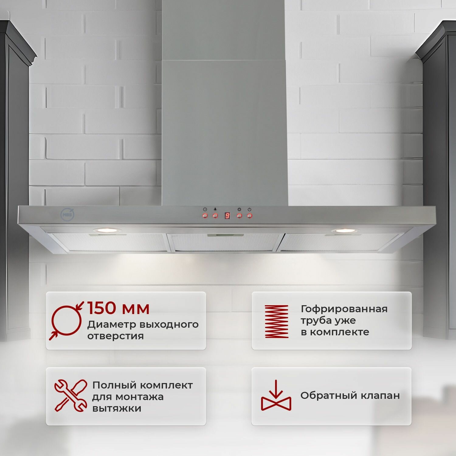 Кухонная вытяжка MBS MUSA 190 INOX/90 см/производительность 950м3/ч, низкий уровень шума. интересное: