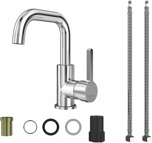 Смеситель для раковины (умывальника) Elghansa 16A1024 однорычажный с поворотным изливом с гибкой подводкой, хром