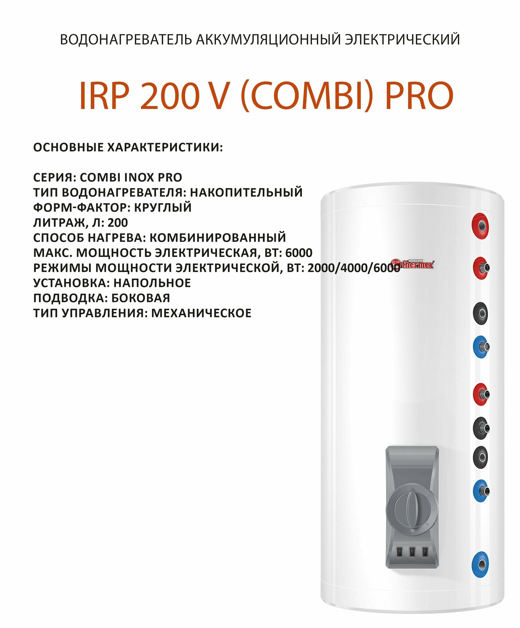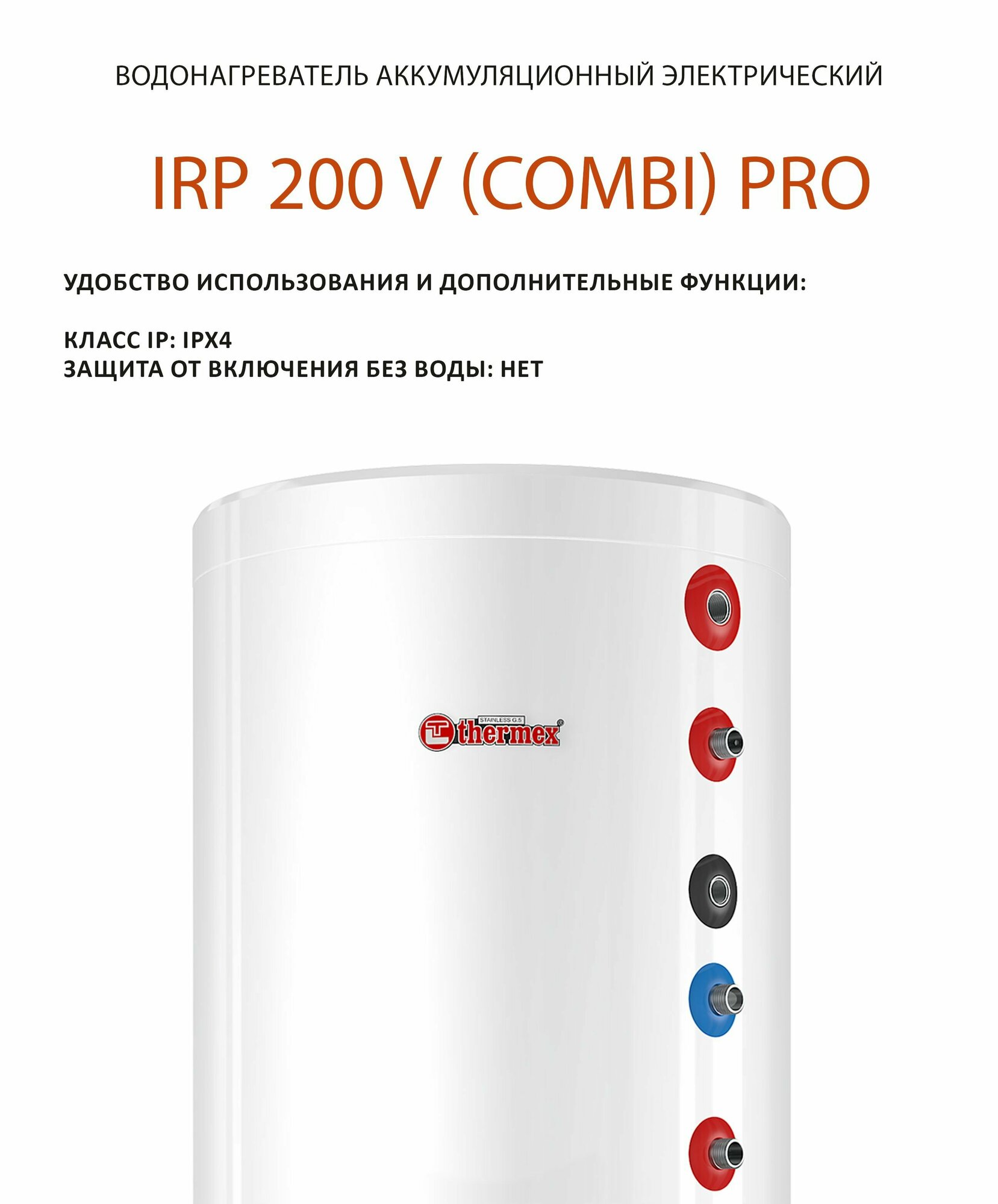 Водонагреватель накопительный THERMEX IRP 200 V (combi) PRO 200л 6кВт