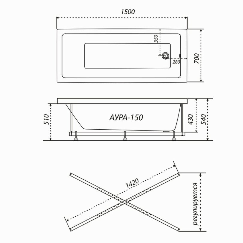 Купить Акриловая ванна Triton Аура 150x70 Щ0000042100 без гидромассажа