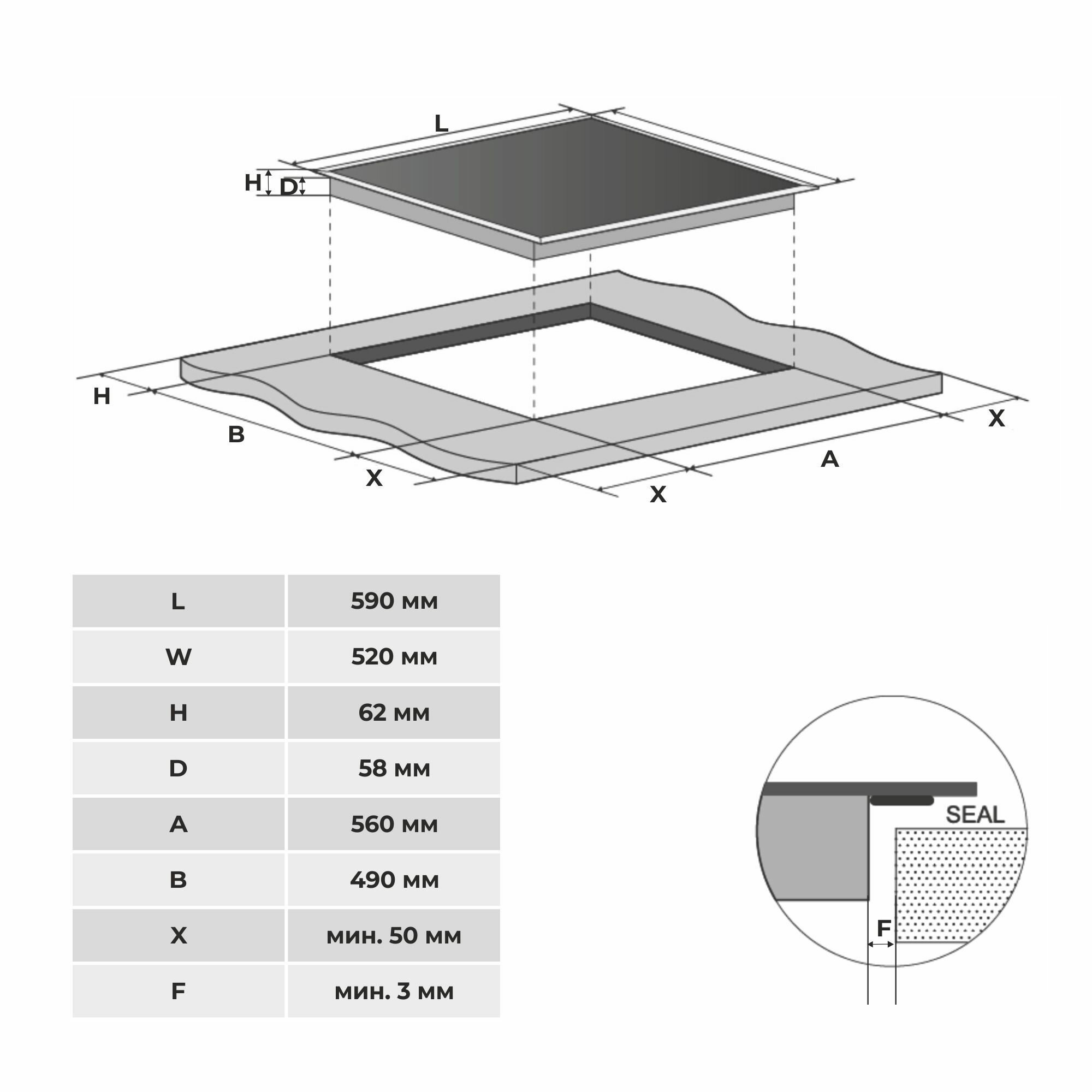 | Ширина для встраивания | 56 см |