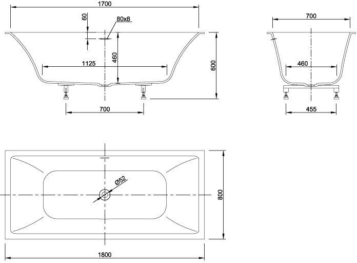 Акриловая ванна Vitra Optimum 170х75см, арт. 64570001000