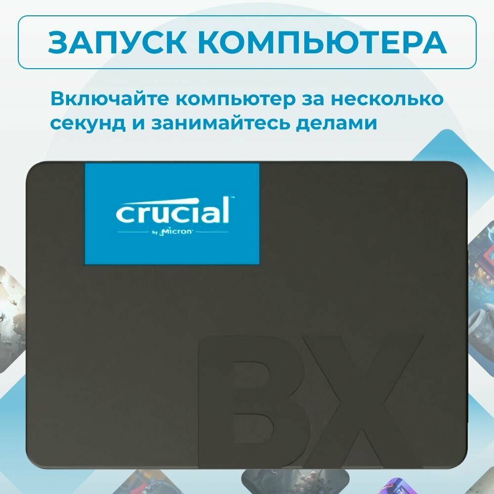 Crucial SSD BX500, 500GB, 2.5" 7mm, SATA3, 3D TLC, R/W 550/500MB/s, IOPs 95 000/61 000, TBW 120, DWPD 0.2 (12 мес.)