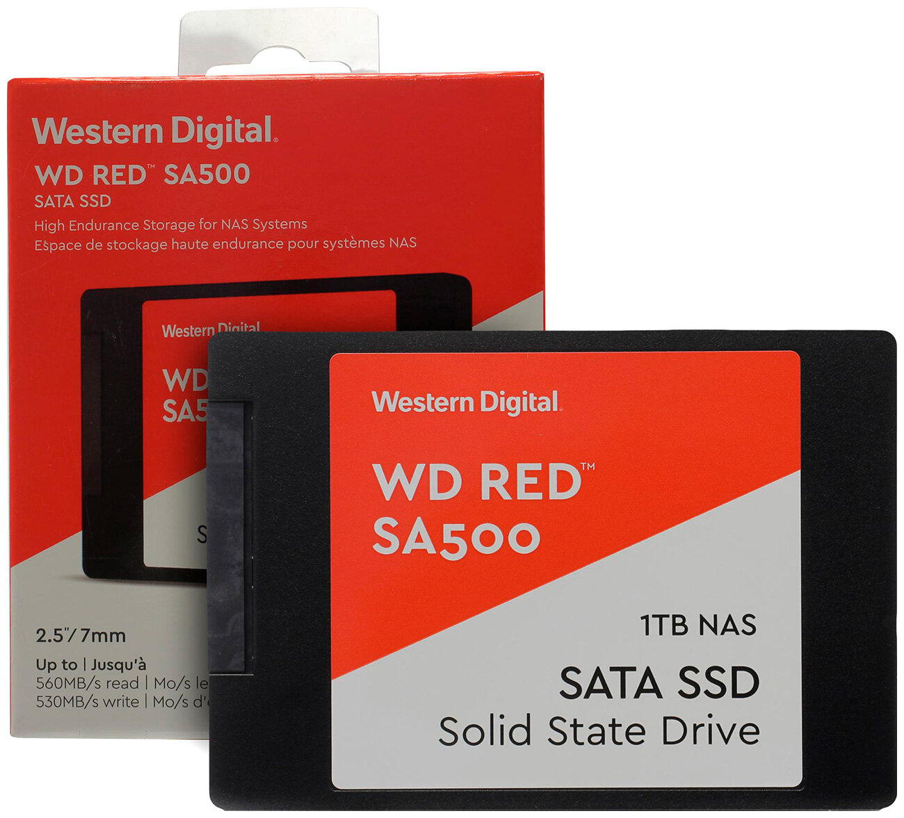 Накопитель SSD Western Digital WDS100T1R0A Red SA500 /SATA III/1 TB /Скорость чтения 560МБайт/с Скорость записи 530МБайт/с