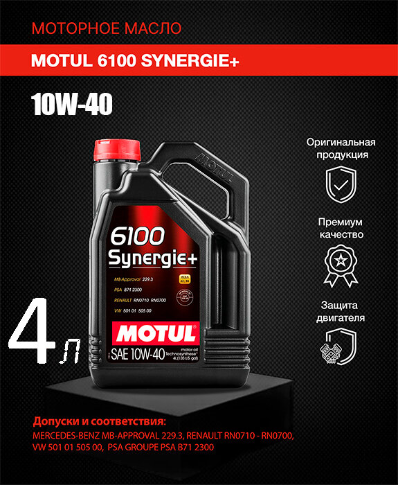 Масло моторное MOTUL Synergie+ 6100 10W40, Technosynthese 4 литра Масл MOTUL 10W40 61 101491/109463