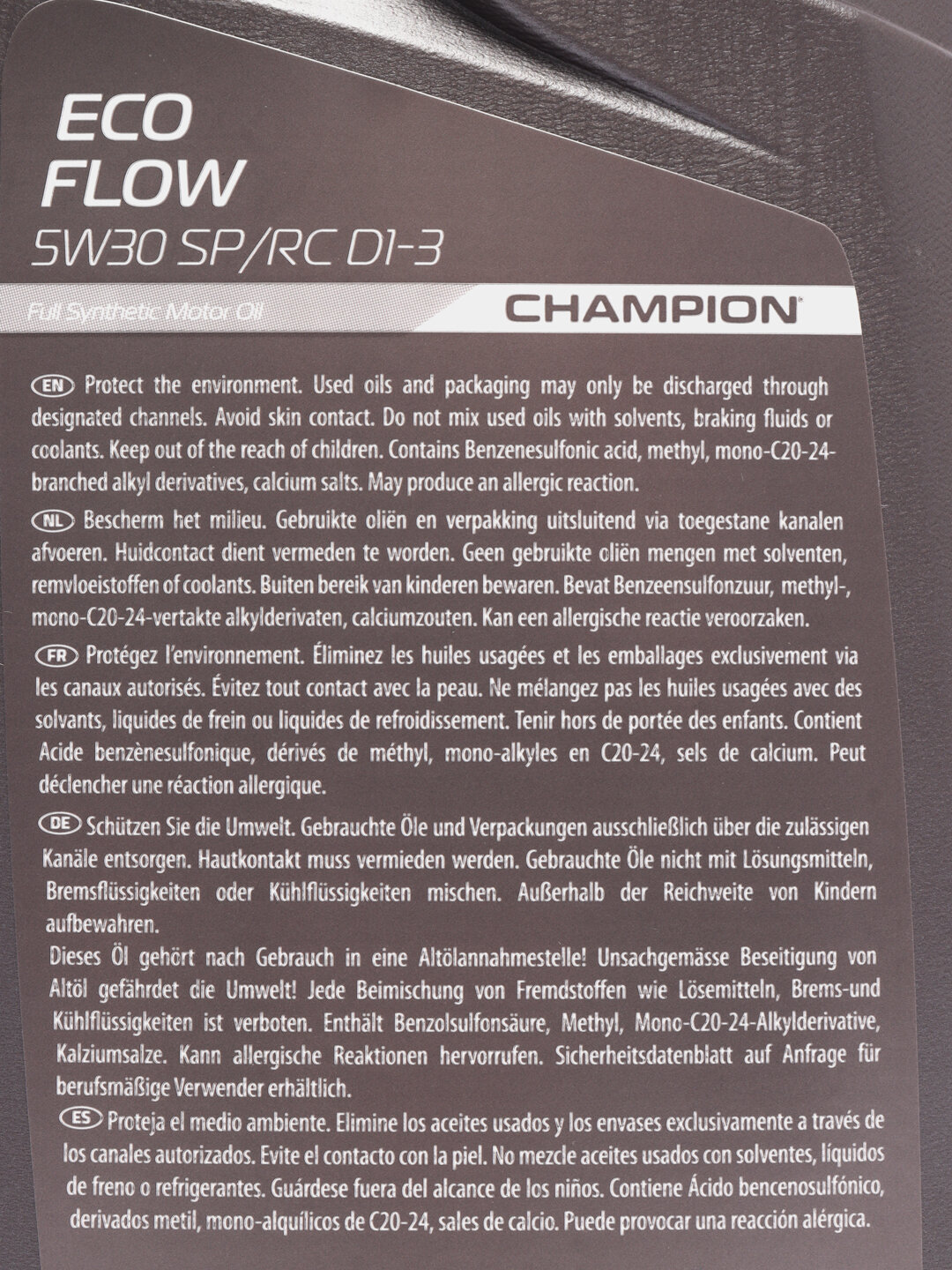 CHAMPION OIL 1049917 Масло мот. синт. CHAMPION ECO FLOW 5W30 SP/RC D1-3 (4л)