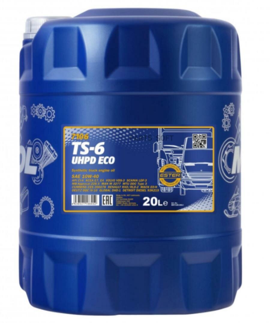 7106-20 Mannol Ts-6 Eco Uhpd 10W40 Cинтетическое Моторное Масло 10W-40 20Л Man M 3277 Approval,Mb Approval 228.5,Mtu Type 3 A... интересное: