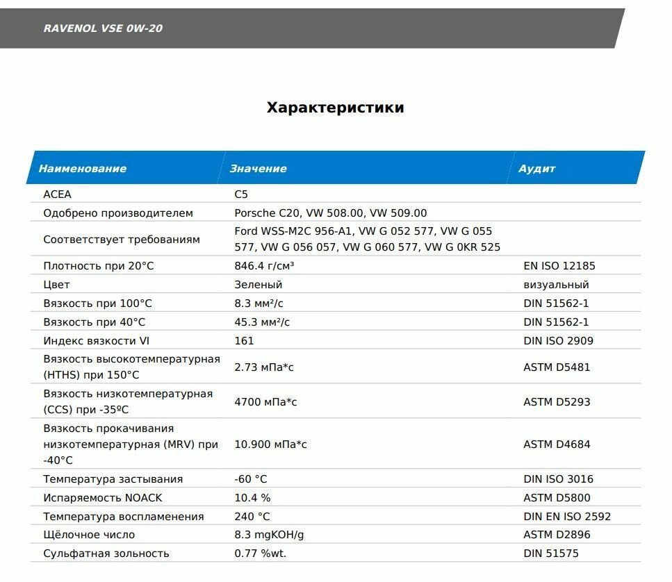 | Допуски OEM | VW 509.00 / VW 508.00 / Porsche C20 |