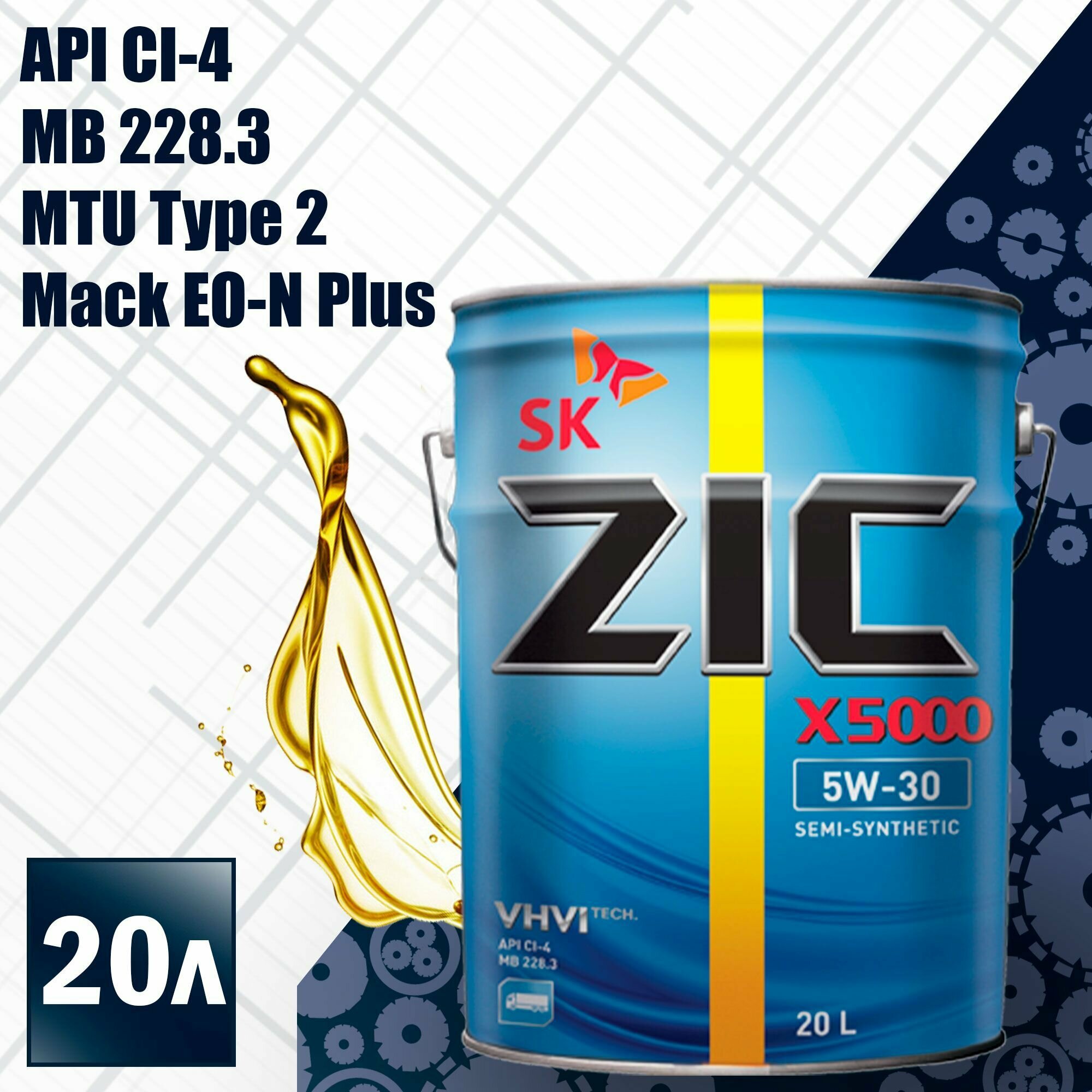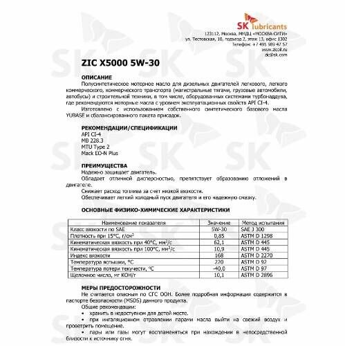 ZIC 192663 ZIC X5000 5W30 (20l)_масло мот.! п/синт.\ API CI-4, MB 228.3, MTU Type 2