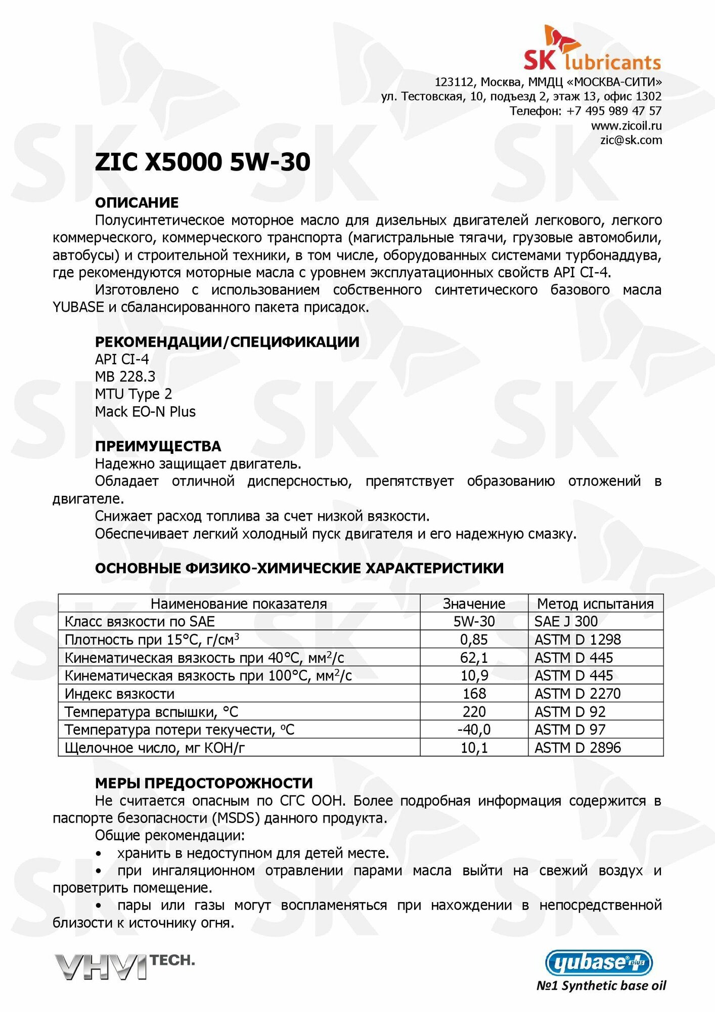 ZIC 172663 ZIC X5000 5W30 (6l)_масло мот.! п/синт.\ API CI-4, MB 228.3, MTU Type 2