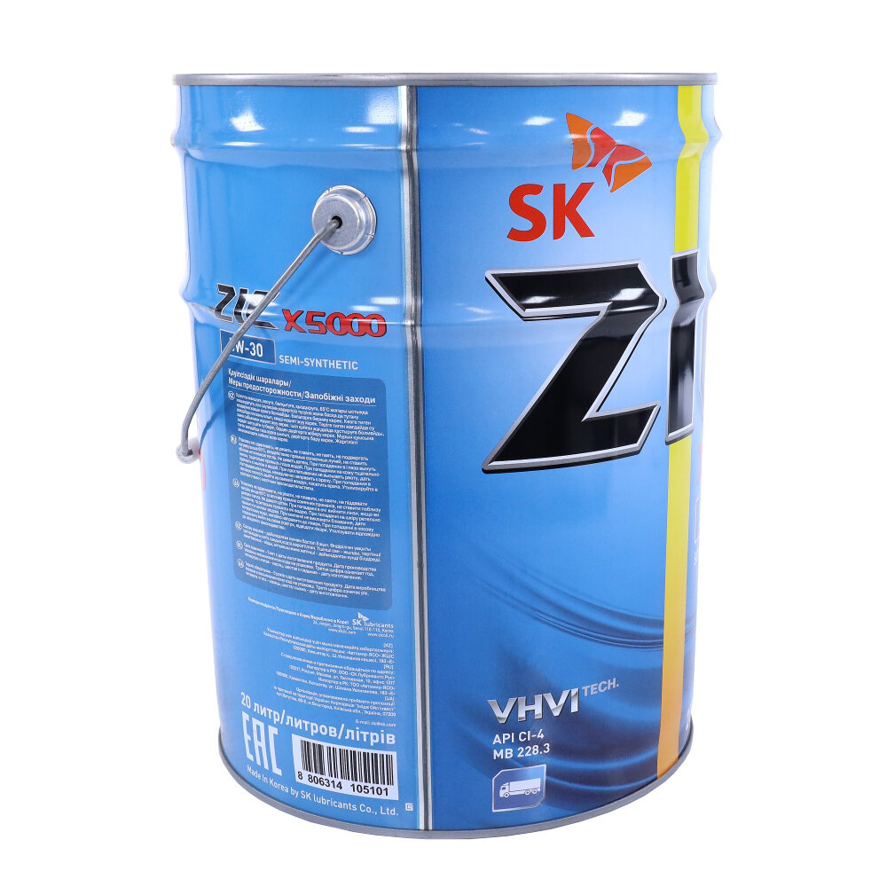ZIC 192663 ZIC X5000 5W30 (20L)_масло моторное! п/синт.\ API CI-4, ACEA E7, MB 228.3, JASO DH-1 1шт