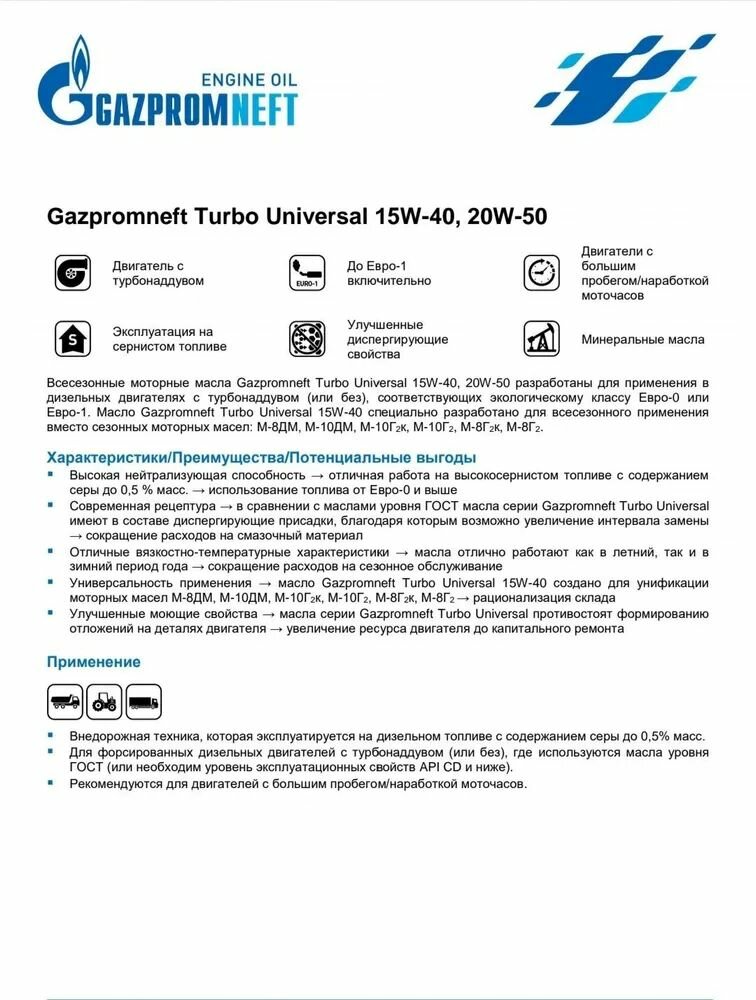 Gazpromneft Gazpromneft Turbo Universal 15W40 Cd 50 Л (Масло Минеральное)