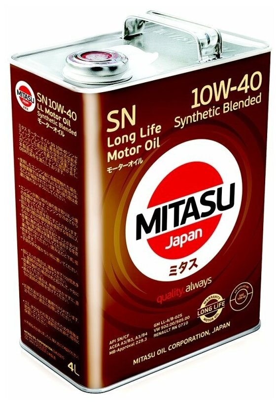 MITASU Масло Мотоpное Mj122а Motor Sn 10W40 Synthetic Blended Масло Мотоpное 4Л N интересное: