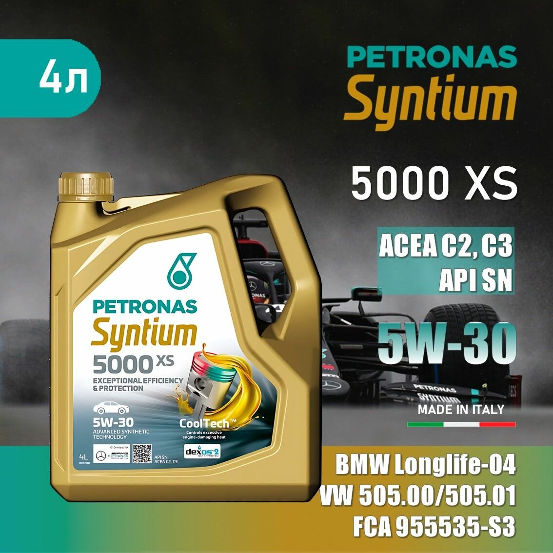 70660K1YEU/18144019 Моторное масло PETRONAS SYNTIUM 5000 XS синт. 5W30 , 4л, API SN, ACEA C3, VW 505.01, BMW LL-04, MB Approval 229.51