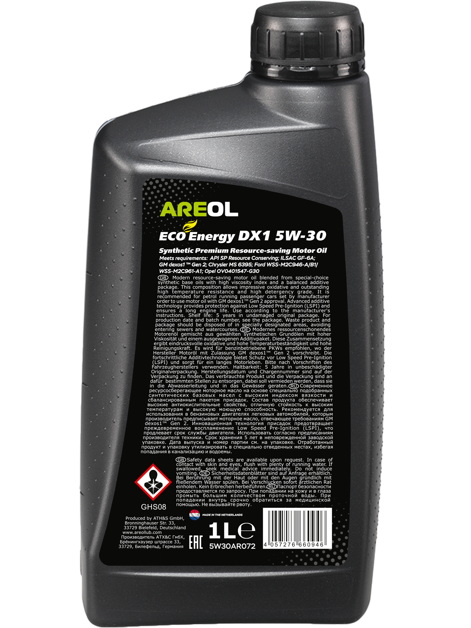 AREOL 5W30AR072 AREOL ECO Energy DX1 5W30 (1L)_масло моторное! син.\API SP RC, ILSAC GF-6A, Dexos1 Gen 2