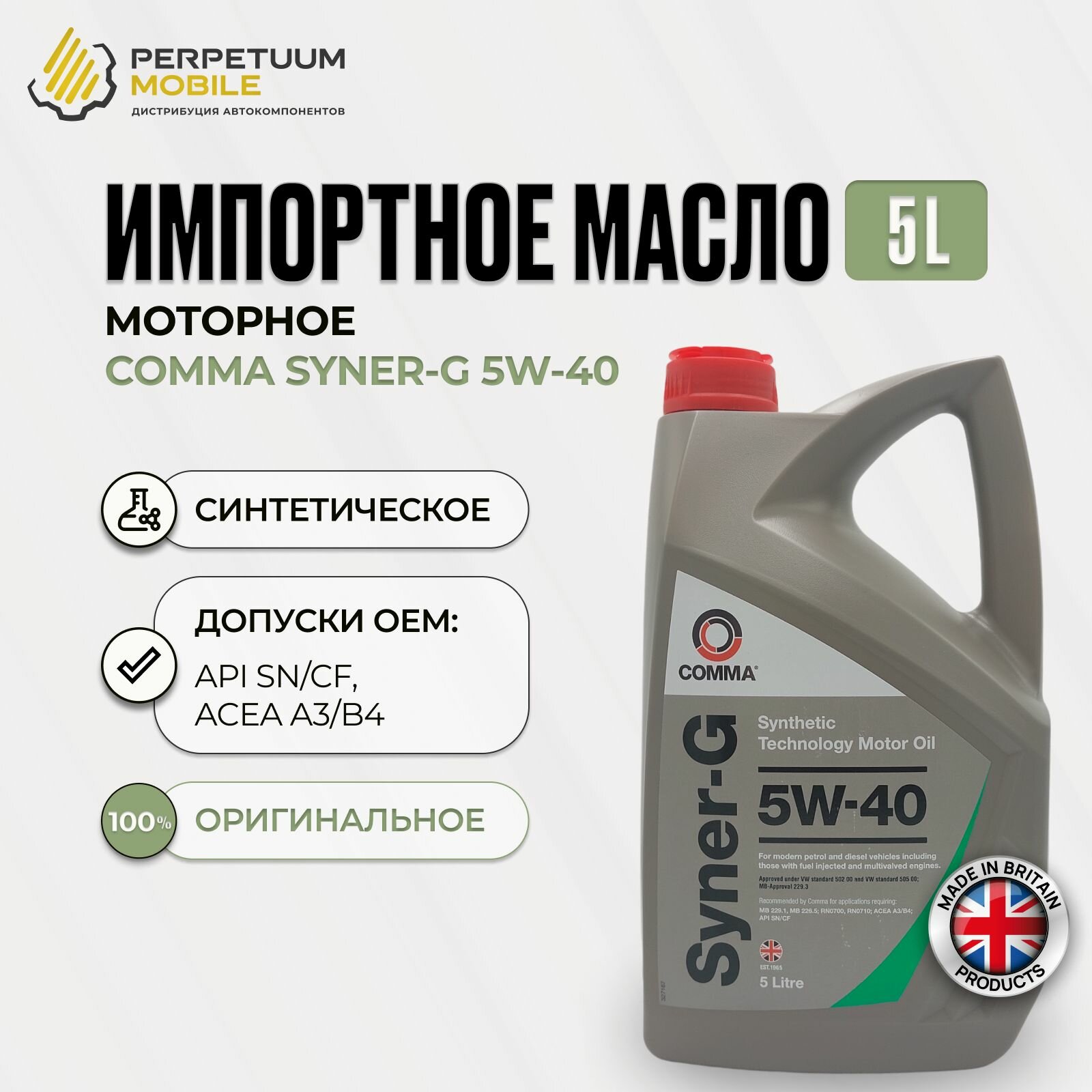 COMMA SYN5L COMMA 5W40 SYNER-G (5L)_масло мот.! син.\ ACEA A3/B4,API SN/CF, MB 229.1(3),VW 502.00/505.00 1шт