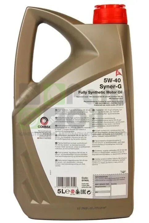 comma 5w40 syner-g (5l)_масло мот.! син.\ acea a3/b4,api sn/cf, mb 229.1(3),vw 502.00/505.00