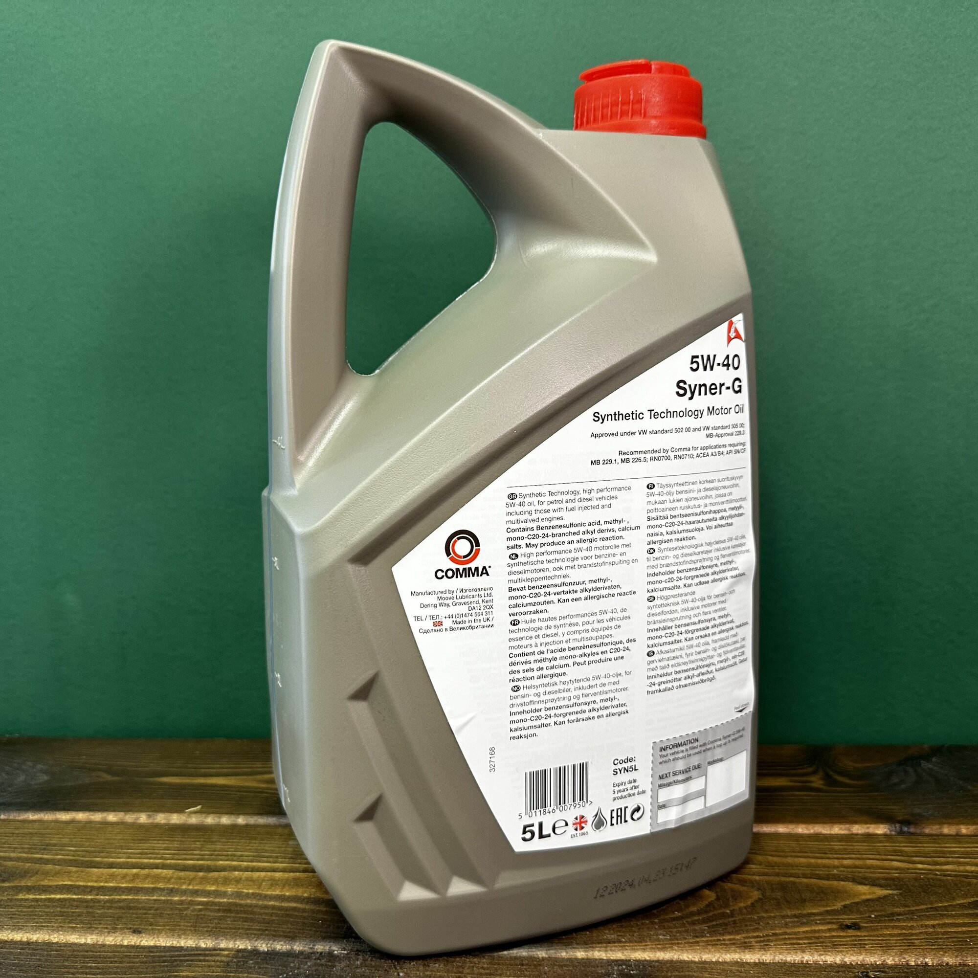 Синтетическое моторное масло Comma Syner-G 5W-40, 4 л, 3.6 кг