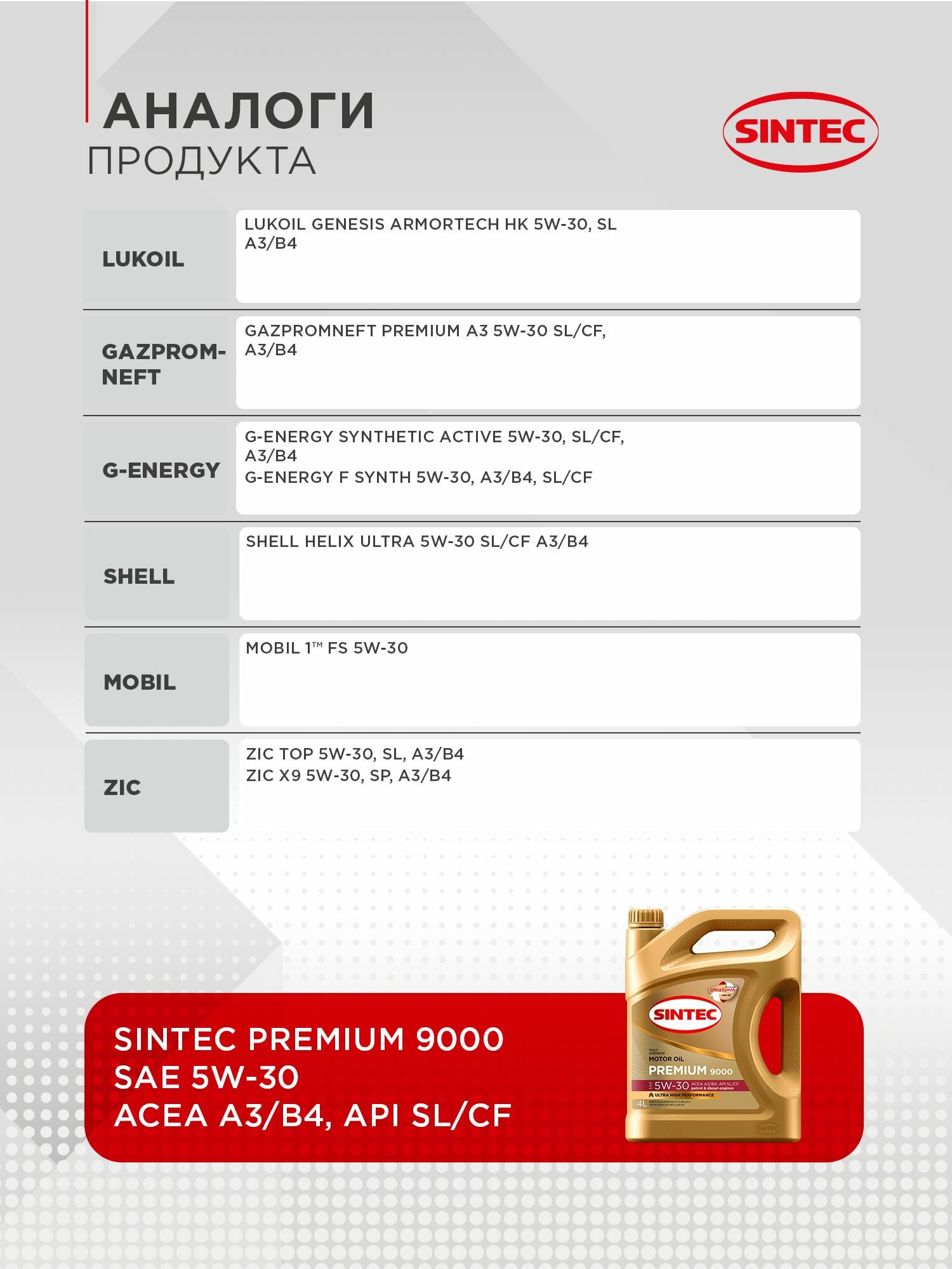 SINTEC Рњр°Сѓр»Рѕ Рјрѕс‚Рѕсђрѕрѕрµ 5W30 4Р» Sintec Premium 9000 A3/B4 Сѓрёрѕс‚Рµс‚Рёс‡Рµсѓрєрѕрµ
