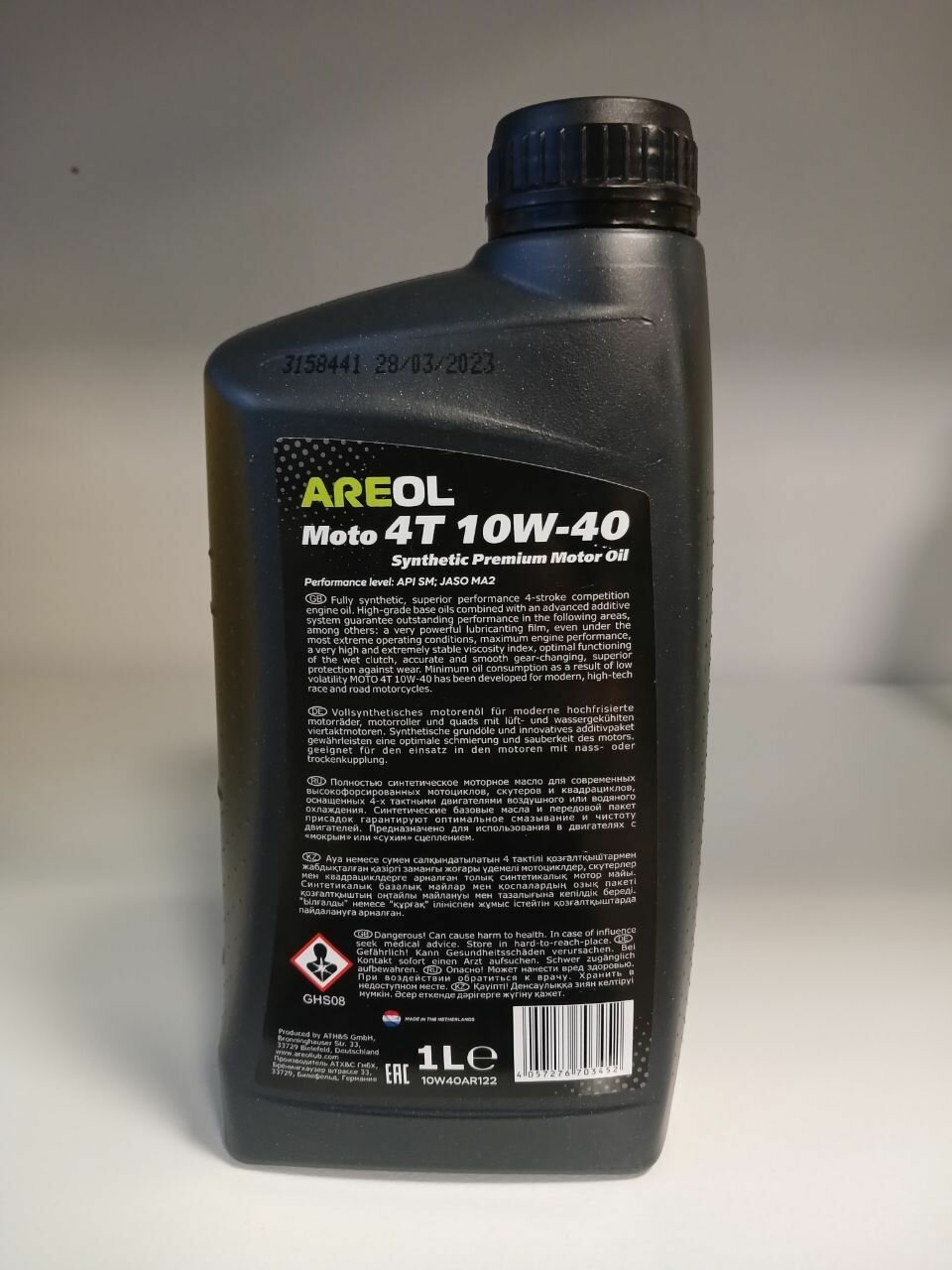 AREOL MOTO 4T 10W40 (1L)_масло моторное! (синт.) для 4-х тактных двиг.\ API SM, JASO MA2 AREOL / арт. 10W40AR122 - (1 шт)
