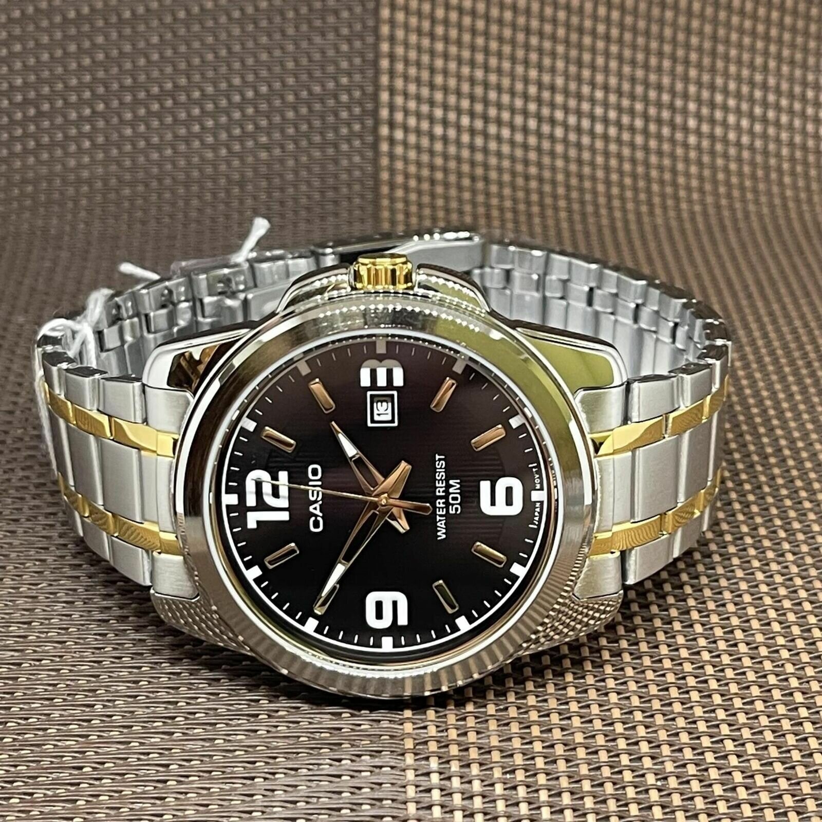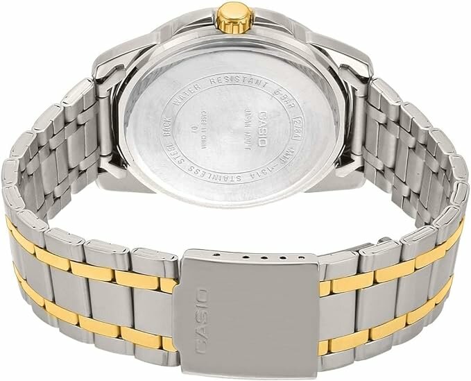 Наручные часы CASIO MTP-1314SG-1A кварцевые, водонепроницаемые, подсветка стрелок, серебристый/золотистый/черный