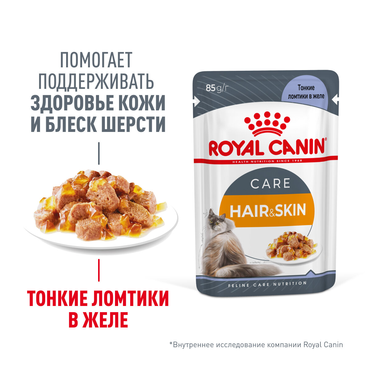 ROYAL CANIN HAIR & SKIN CARE для взрослых кошек при аллергии в желе пауч 85 гр 85 гр х 10 шт