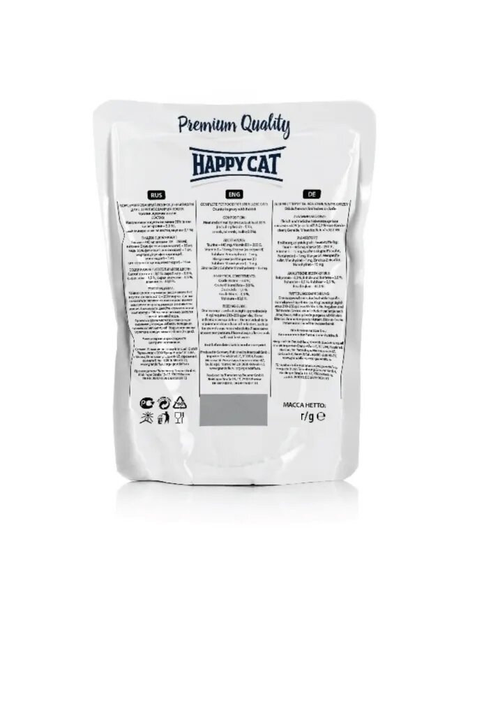 Паучи Happy Cat Корм для кошек, кусочки в соусе кролик и индейка с морковью» 85 гр х 24шт