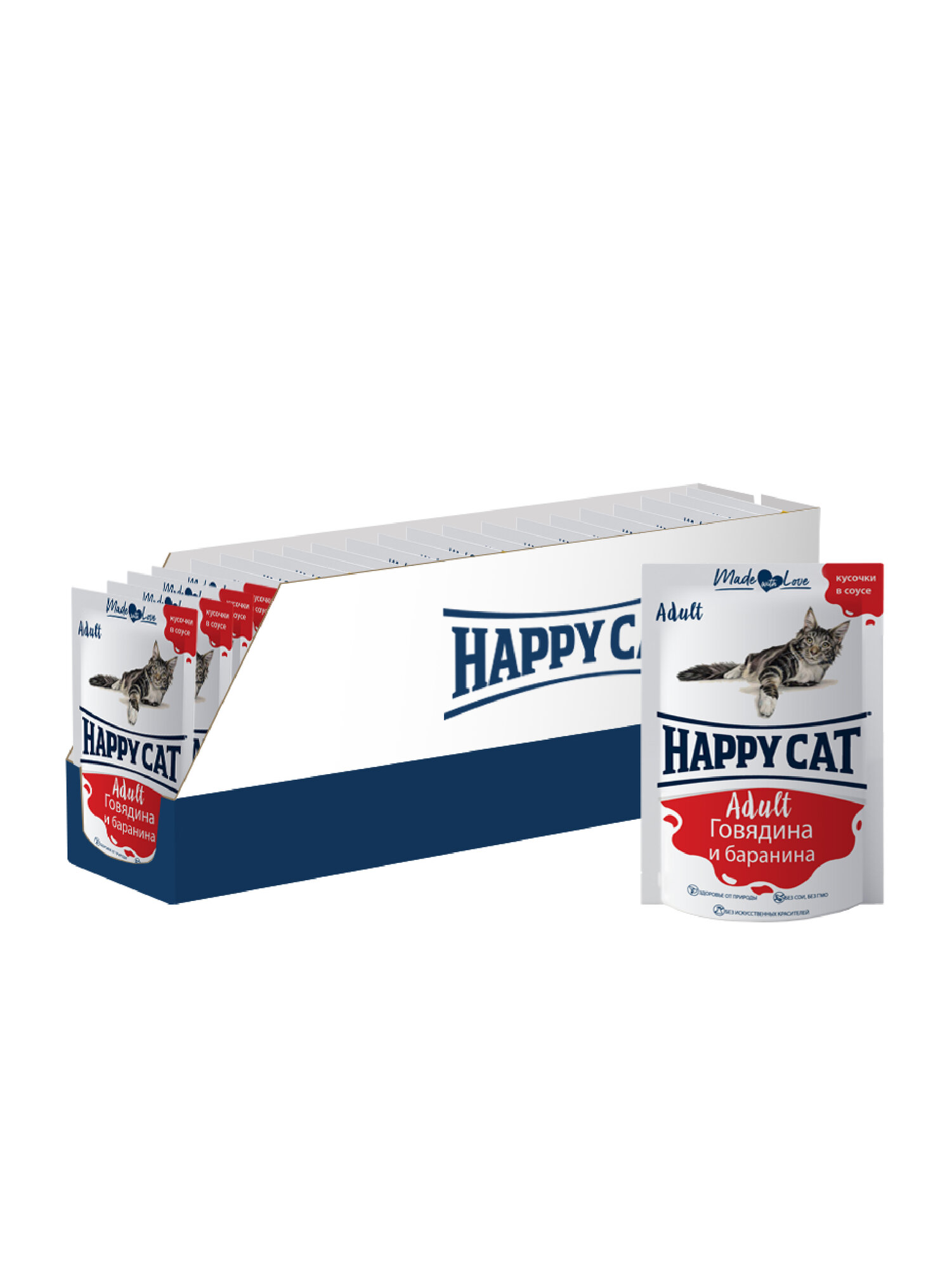 HAPPY CAT для взрослых кошек с говядиной и бараниной в соусе пауч 100 гр 7502314 100 гр х 6 шт