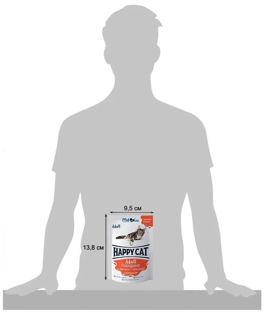 Happy Cat влажный корм для взрослых кошек с говядиной, печенью и горохом, в желе, паучи - 85 г х 24 шт