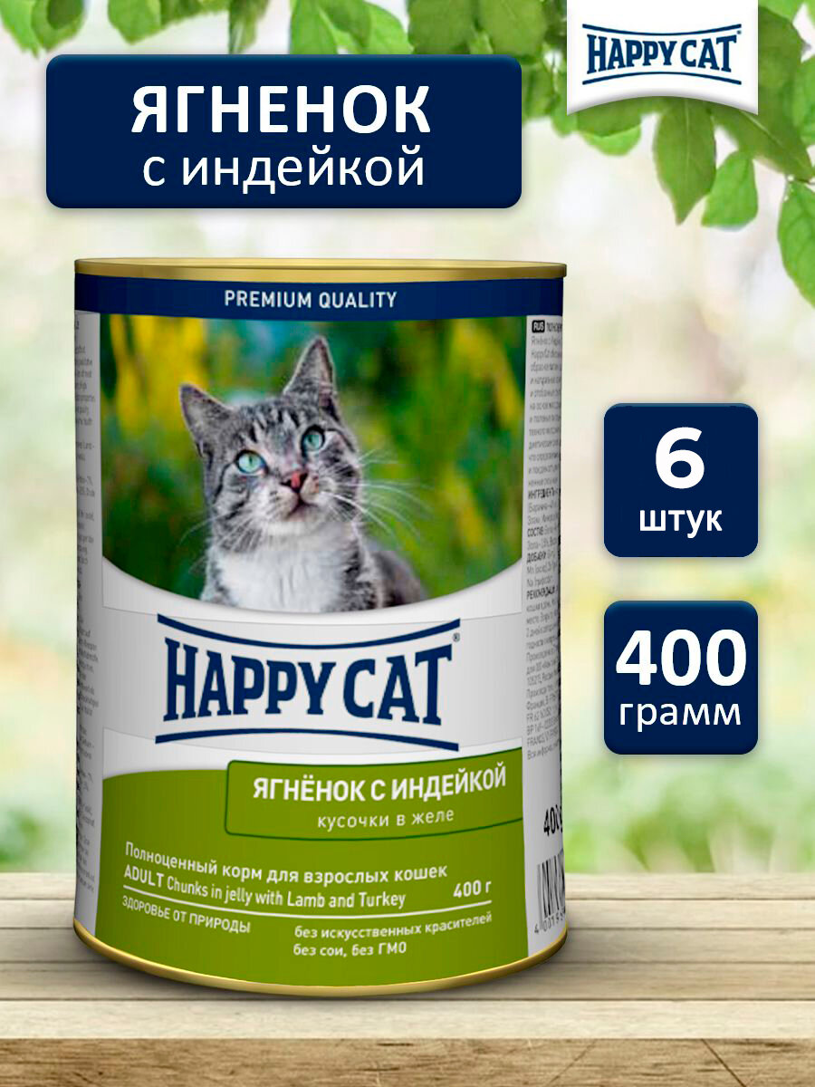 Купить Влажный корм для кошек Happy Cat ягненок, индейка (6шт х 400гр)