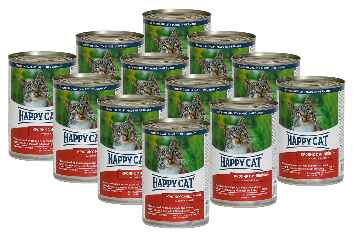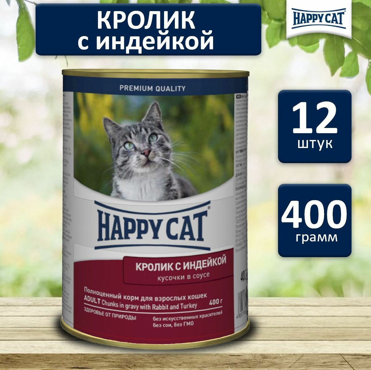 HAPPY CAT для взрослых кошек с кроликом и индейкой в соусе банка 400 гр х 12 шт
