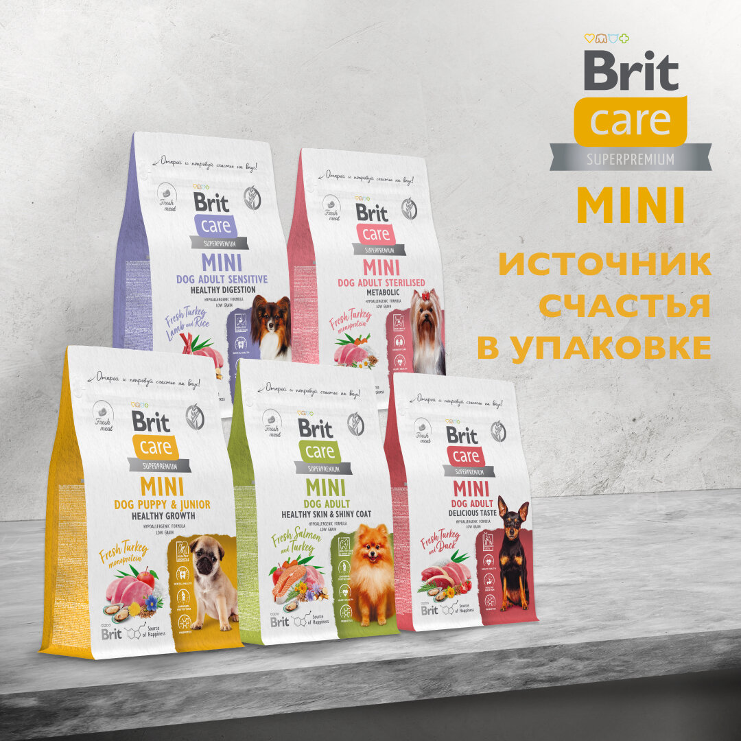 BRIT CARE Mini, Сухой корм с индейкой для щенков и молодых собак мини пород "Puppy&Junior. Healthy Growth",1.5кг