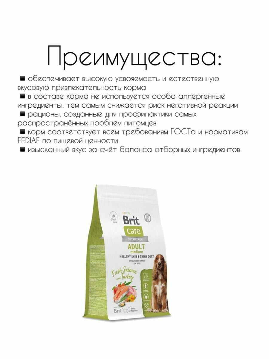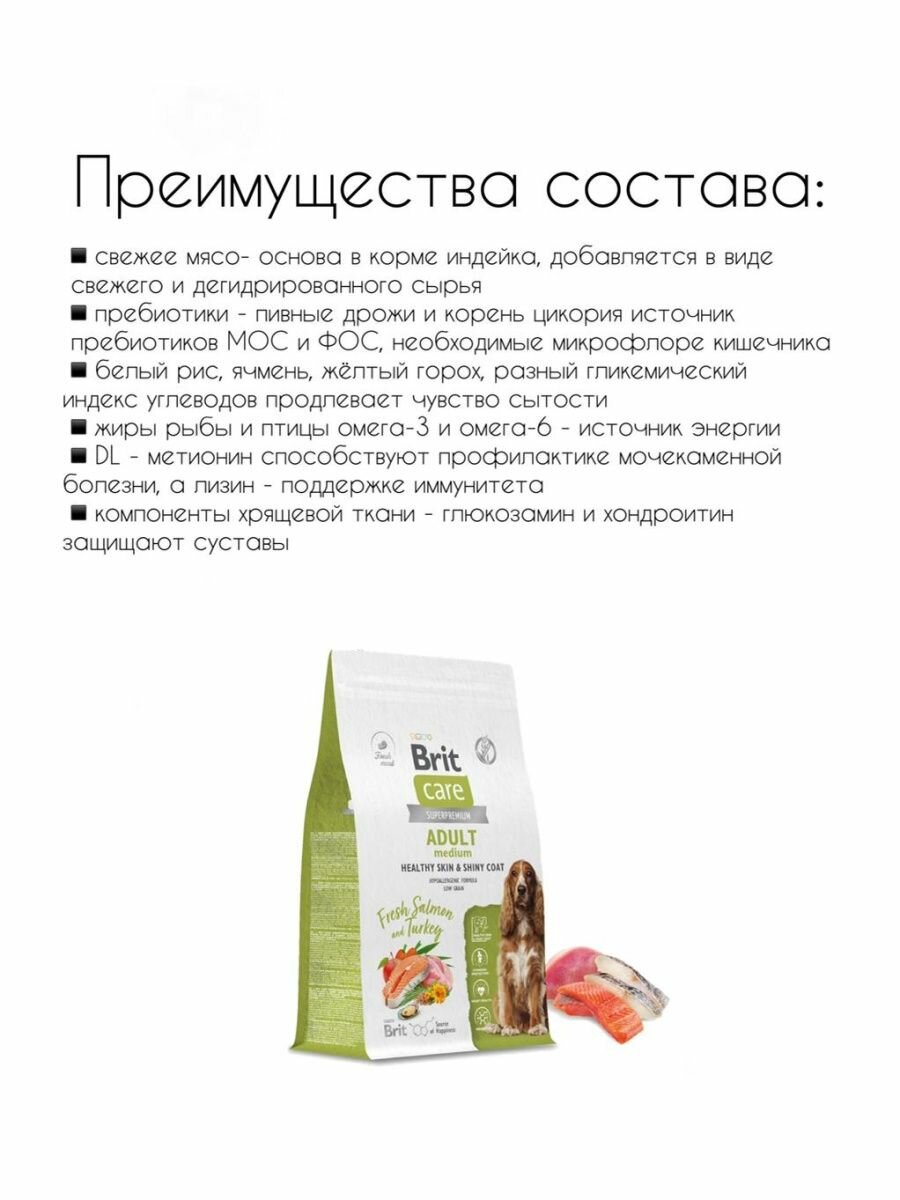 BRIT CARE DOG ADULT MEDIUM HEALTHY SKIN & SHINY COAT д вз соб ср пор при аллергии с лосос и индейкой 3 кг